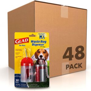 Glad for Pets Extra Large Unscented Dog Waste Bags with Dispenser and Metal Clip – Plastic Disposable Heavy Duty Poop Bags for Dogs, Easy to Use for Dog Walking (Pack of 48, 1440 Count Total)