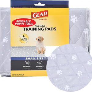 Glad for Pets Reusable Dog Pee Pads, Gray with Paw Prints – Washable Potty Pads for Dogs, Cloth Puppy Potty Training Pads, Puppy Essentials, Waterproof Pet Mats for Floor, 18” x 24”, 2 Count